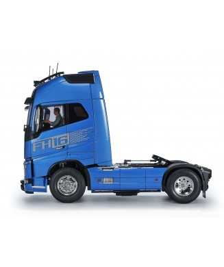 Volvo Trucks es un fabricante de vehículos comerciales con una reputación de primer nivel a nivel mundial, y la serie FH es una de sus marcas insignia, que experimentó una renovación completa en 2012. Este kit de montaje de modelo a radiocontrol recrea el FH16 Globetrotter XL 750 4x2 de esa gama, un camión con un motor turbo de 6 cilindros en línea de 16,1 litros y 750 CV. El modelo cuenta con una carrocería de gran realismo con piezas para recrear personalizaciones populares, además de un interior realista e incluso una figura de conductor. Su chasis utiliza numerosas piezas metálicas y cuenta con una transmisión de tres velocidades que permite cambiar de marcha.